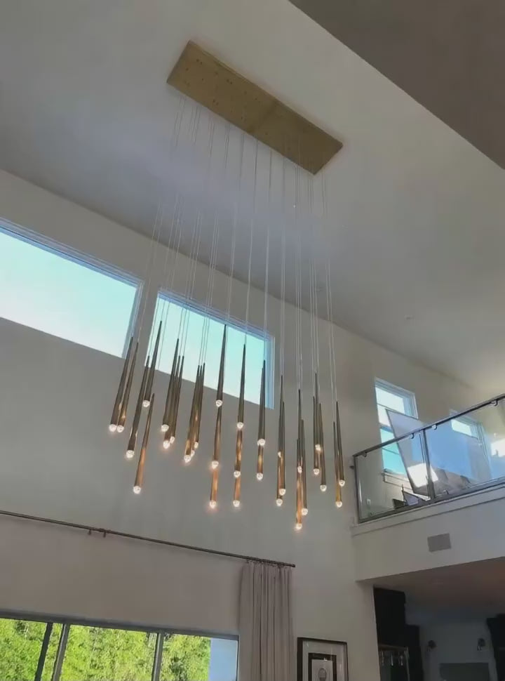 Harsh lights failing high-ceiling drama? Aurorae Lighting’s best-selling Cascade Cone Pendant Light delivers cozy 3000K warm glow – glare-free CRI>90 true colors through 1.58" brass cones (15" tall) – adjustable architectural cascade! From $1,585 | Free Shipping $400+ | 4-Year Warranty | UL-Listed.